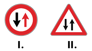 Şekildeki I ve II numaralı trafik işaretleri için aşağıdakilerden hangisi doğrudur?