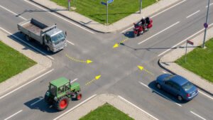 34. Şekildeki karşılaşmada hangi araç öncellikle geçiş hakkını kullanmalıdır?