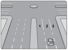 44. Şekildeki araç sürücüsü dönel kavşaktan geriye dönüş yapmak için hangi şeridi izlemelidir?