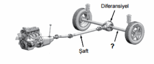 30. Şekilde soru işareti (?) ile gösterilen ve diferansiyelden aldığı hareketi tekerleklere ileten güç aktarma organının adı nedir?