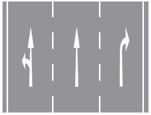 11. Kavşaklara yaklaşırken yol üzerine çizilmiş şekildeki oklar sürücülere neyi bildirir?