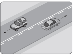 31. Şekildeki kara yolu bölümünde, yan yana çizilmiş kesik ve devamlı yol çizgileri sürücülere aşağıdakilerden hangisini bildirir?