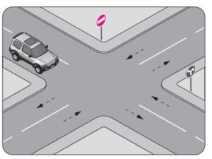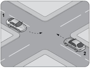33. Şekle göre, sola dönüş yapmak isteyen 1 numaralı araç sürücü ne yapmalıdır?