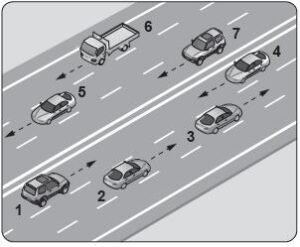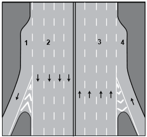 12. Şekildeki numaralanmış şeritlerden hangisi otoyollardan ayrılmak isteyen araçlar içindir?
