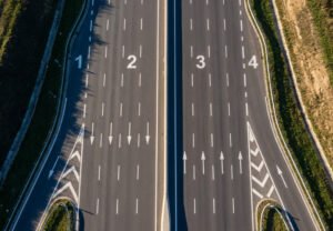44. Şekildeki numaralanmış şeritlerden hangisi otoyollardan ayrılmak isteyen araçlar içindir?